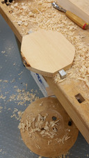Till skålen lämnade jag extra stöd på motsatta sidor vid den grova tillsågningen. Efter att jag hyvlat mitt stycke på både över och undersidan så börjar jag urgröpning med skölpar.